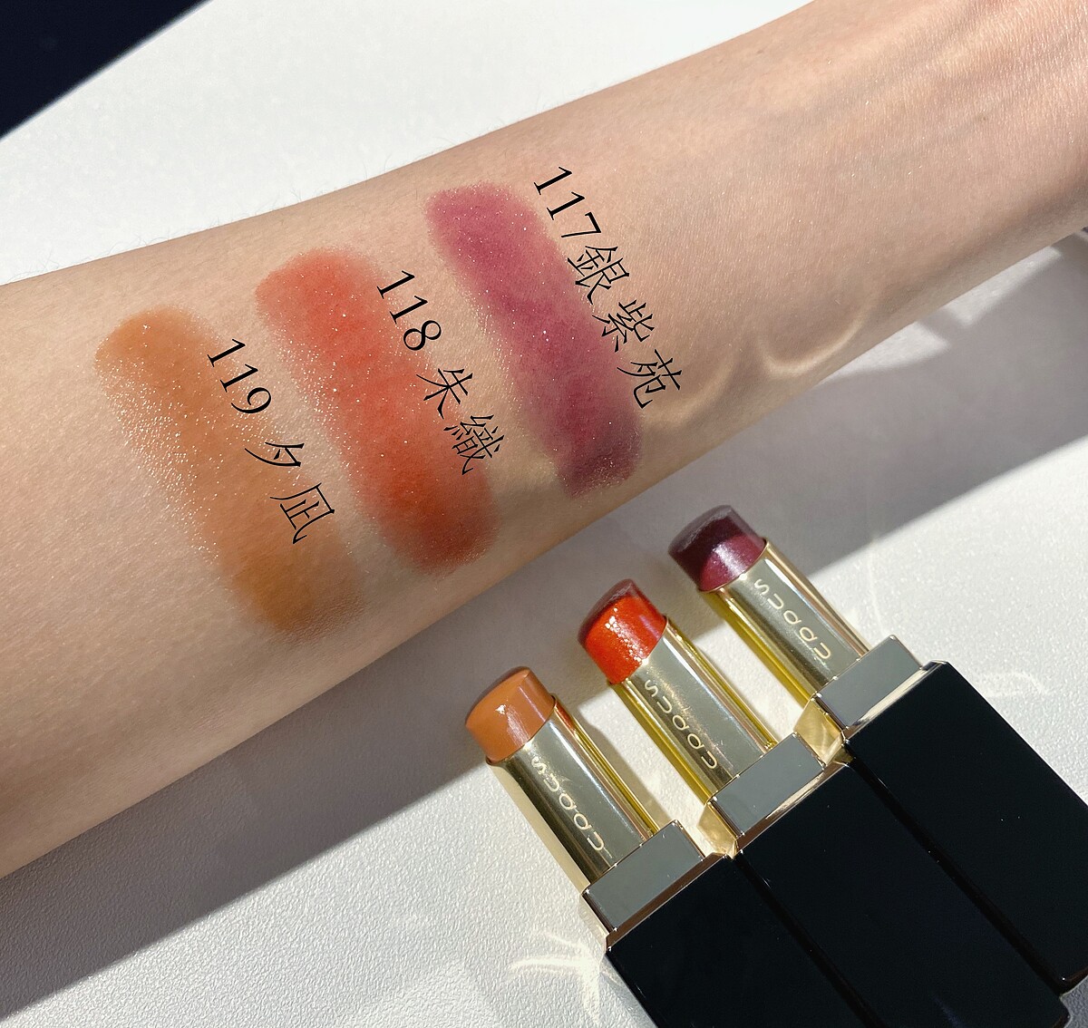 SUQQU的經典唇膏「晶采艷澤唇膏 」推出限定3色,首推主打色#119夕凪YUUNAGI介於裸色和棕色之間的中間色調,焦糖棕色適合任何妝容,給予裸透輕盈的氛圍。