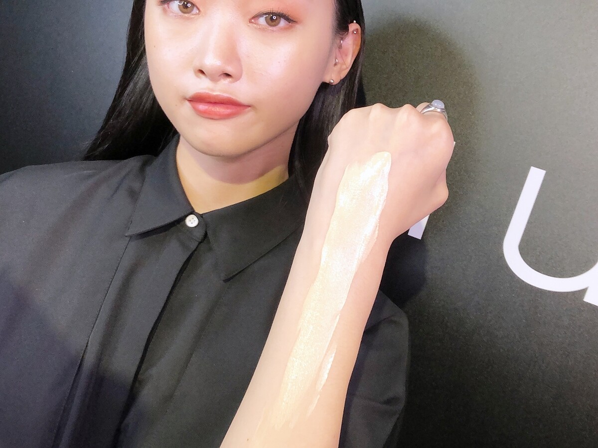 原因之一就在使用的成份,無極限光澤水粉底使用植村秀最新的保濕植萃複合配方,當中有日本珍稀的白牡丹品種「白雪姬」,白雪姬是一種只生長在日本新潟縣魚沼市的牡丹花,數量非常稀少。它的花朵精華有著類維生素 D 的強化肌膚屏障功能,植村秀將針對白牡丹萃取精華結合海洋深層水、夏威夷堅果油,讓肌膚同時補水滋潤,自然可以透出明亮光澤。