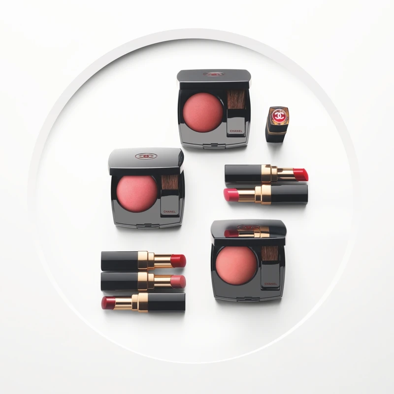 香奈兒彩妝創意工作室於1980年發表首款「香奈兒圓形腮紅」,到現在已推出了140種色選,從自然裸妝到濃豔繽紛都有。而最著名的還有腮紅帶著玫瑰香氛,一刷為雙頰留下細緻香氣。