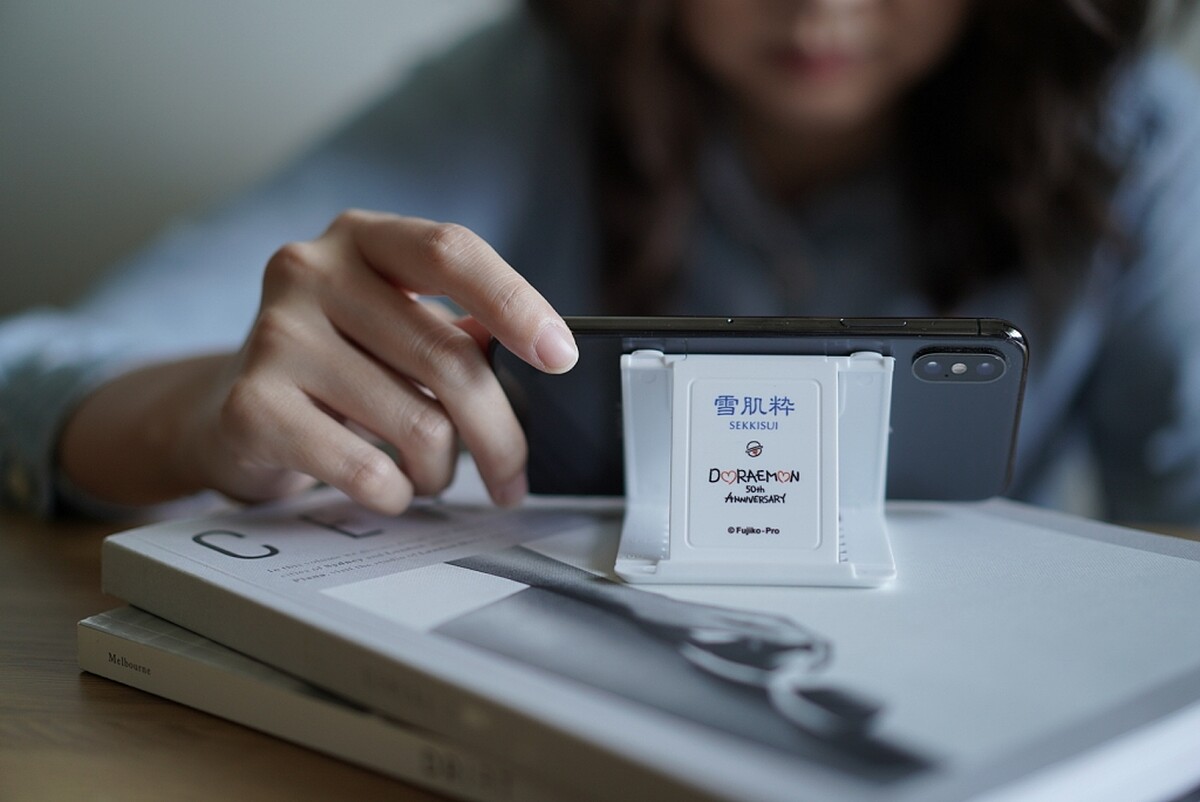 雪肌粹哆啦A夢多角度手機架,是追劇人必收小物,減少躺著看手機被砸到臉的機會,超級貼心。