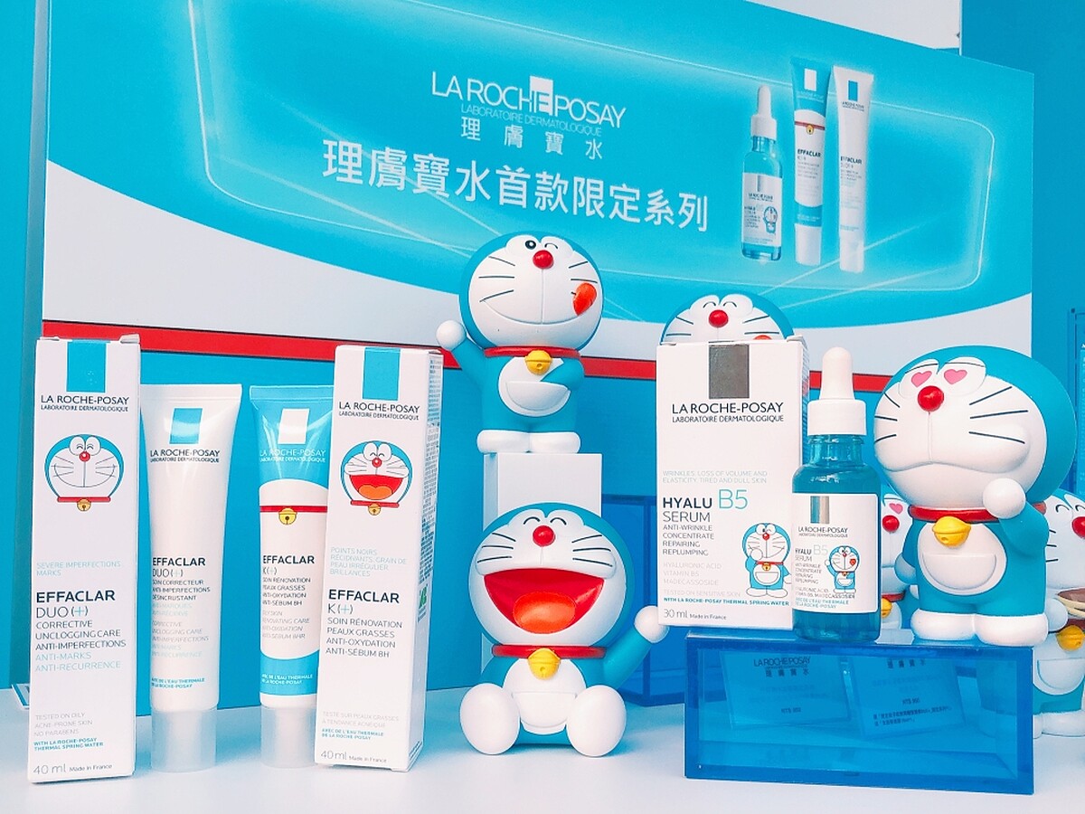 哆啦A夢總是能在大家最需要他的時候,使用神奇的道具解決大家疑難雜症,如同理膚寶水為肌膚各種問題提供最佳保養方案!因此理膚寶水在2020年推出首款限定包裝,就以經典商品B5彈潤修復精華、淨痘無瑕極效精華DUO+、淨透煥膚極效精華K+三樣產品,在產品本身或外包裝盒上印製了可愛的哆啦A夢。
