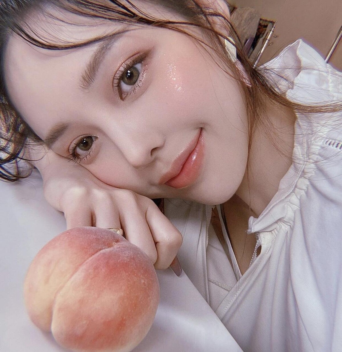 打造彷若天生的光澤裸妝,應該是讓光線像精靈一樣,在臉上輕盈流轉,動靜間展露不同風情。另一個能打造珠光妝容的重點商品是霜狀質地的光澤棒,在眼皮舖底後薄撲蜜粉定妝,最後天外飛來一筆令人驚豔的精緻紅唇,簡單卻很迷人。