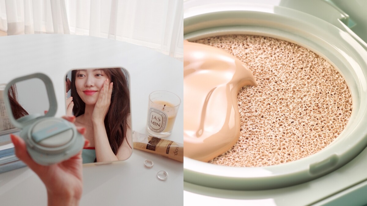 霧感氣墊搭配「智慧氣袋貼妝粉撲」,粉撲表面的細長氣孔在沾取粉底時,能完整吸附高遮瑕粉末,上妝時又能讓粉體均勻附著肌膚,打造服貼的柔霧底妝。
