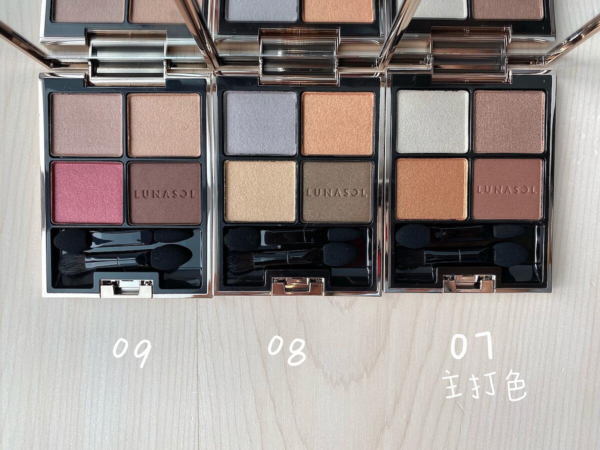 最推薦主打色07,如紅茶般帶有紅感的駝色,上眼後相當深邃有韻味。四格搭配有適合打底的霧光、強調立體感的金屬光,和提升深邃度的顏色,一盤相當實用。