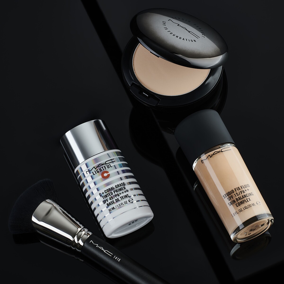 內行彩妝控、彩妝師人手一隻的上妝神器#141熨斗刷,厚實扇形刷頭以及紮實飽滿的合成纖維毛,鼻翼、眼角、所有細微處都能輕鬆均勻上妝。刷子沾取粉底全臉以平拉方式上妝,鼻翼、眼角點壓上妝,肌膚細紋像是被熨斗般燙平,瞬間現光澤平滑水煮蛋肌。妝前妝後加碼 MAC FIX+活力水噴霧,補水鎖水穩定妝效!超細緻輕盈的水噴霧,一噴滿滿保濕能量瞬間滲入肌底,肌膚清爽水潤超舒適。妝前補水喚醒肌膚,妝後定妝增強持妝力,hold住一整天完美妝感!