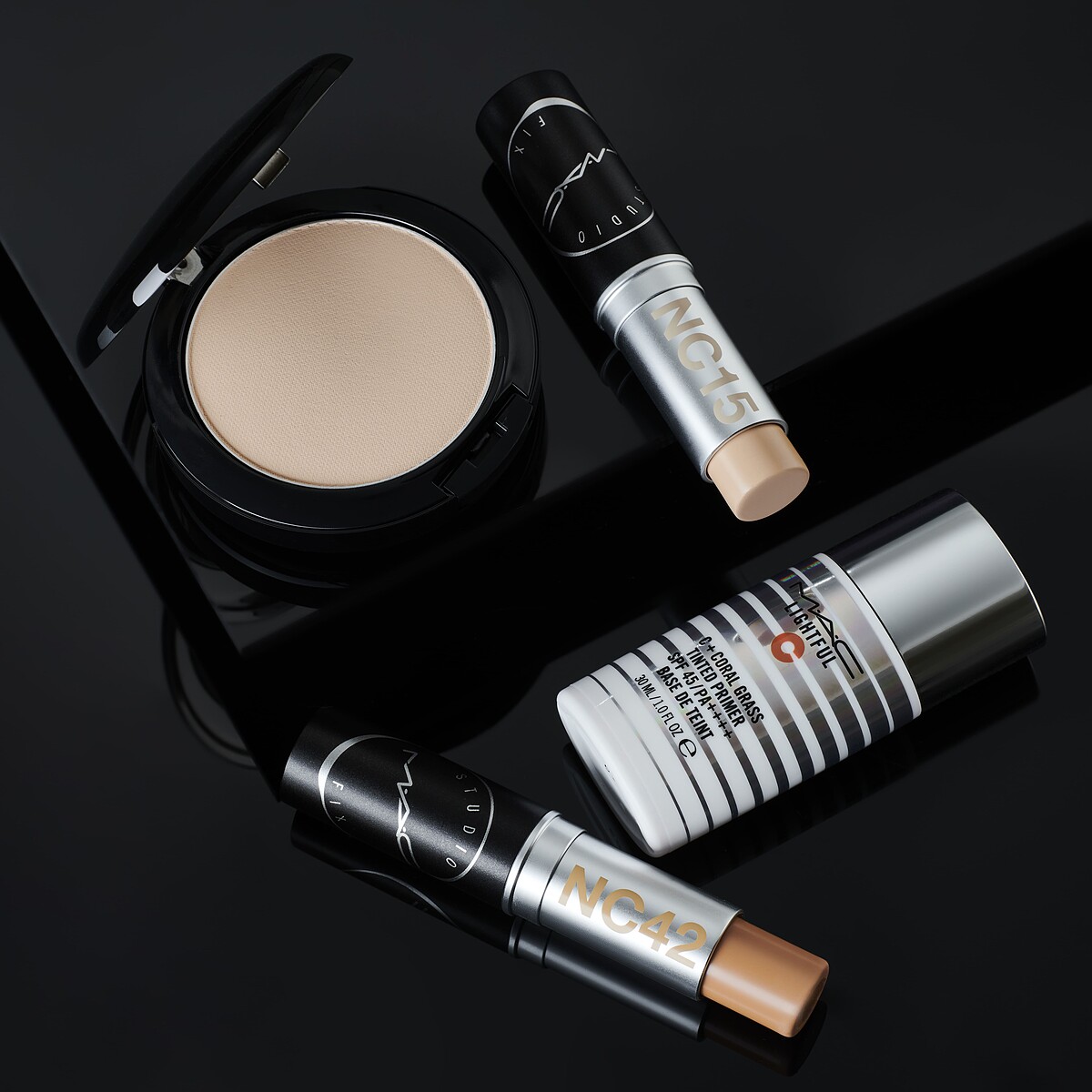 上妝、補妝、修容、遮瑕,一棒all in one!奶油質地一碰到肌膚化為奶霜質地,打造零油光零暗沉,天鵝絨般的絲滑柔霧光美肌。再加碼MAC傳授後台彩妝師的小臉技巧「十字修容法」,另外用深色粉底棒畫出顴骨外側到下巴以及耳屏到鼻翼不超過眼角的十字線條,再以刷子輕輕由內向外刷勻,臉部輪廓更加精緻感立體。