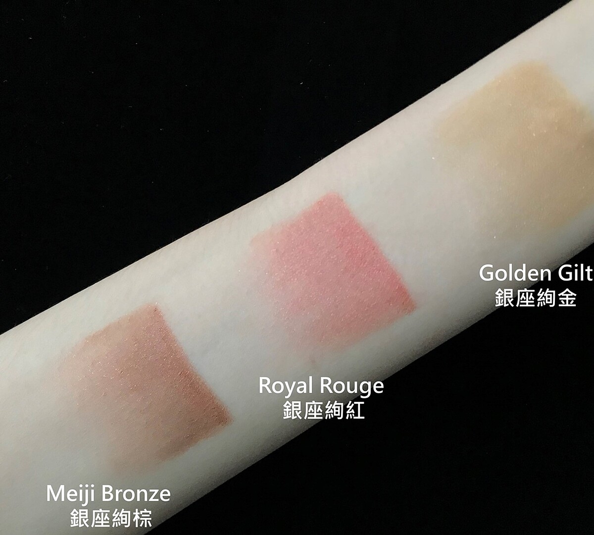 三色分別為:#Golden Gilt銀座絢金、#Royal Rouge銀座絢紅、#Meiji Bronze銀座絢棕