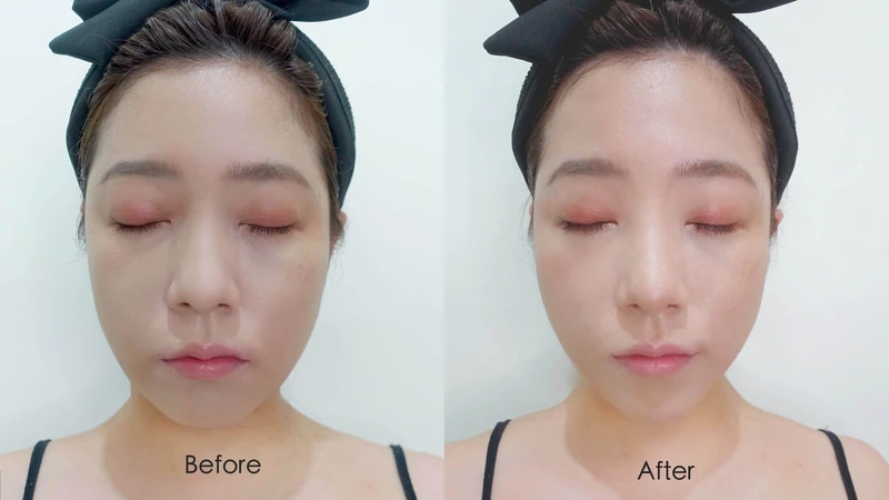 小臉化妝技法:修容、提亮、遮瑕後,請自己看圖是不是真的差很多!M編覺得連臉部輪廓線單感覺像上提了好幾吋~超逆齡,好神奇!肌膚的光澤真心美到爆棚,真的忍不住狂發了好幾張自拍(笑)!