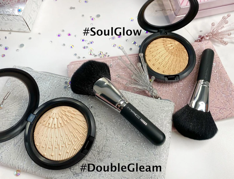 美妝內包含被小紅書推爆的M·A·C超激光炫彩餅,搭配組合內的143SES專業彩妝刷,輕輕刷上肌膚立刻引爆閃亮光澤,銀白煙花彩妝包中的生薑高光#DoubleGleam,以及煙燻粉煙花彩妝包搭配的古銅金#SoulGlow,每一色都刷出高級感!