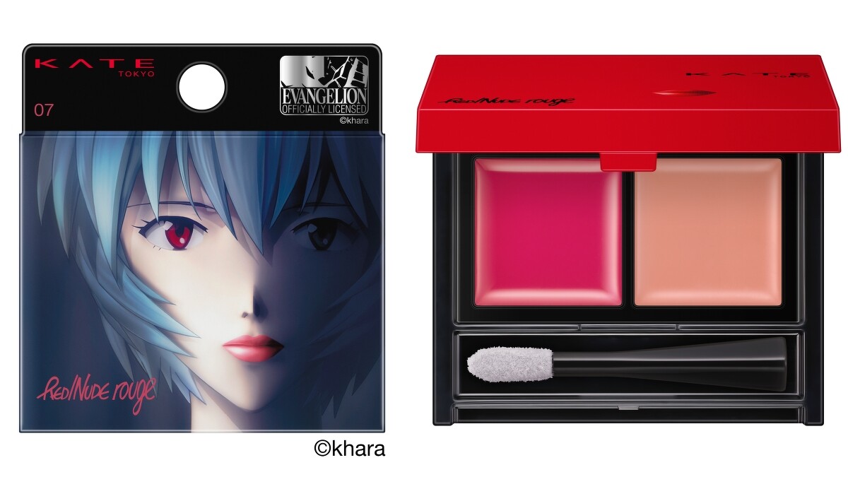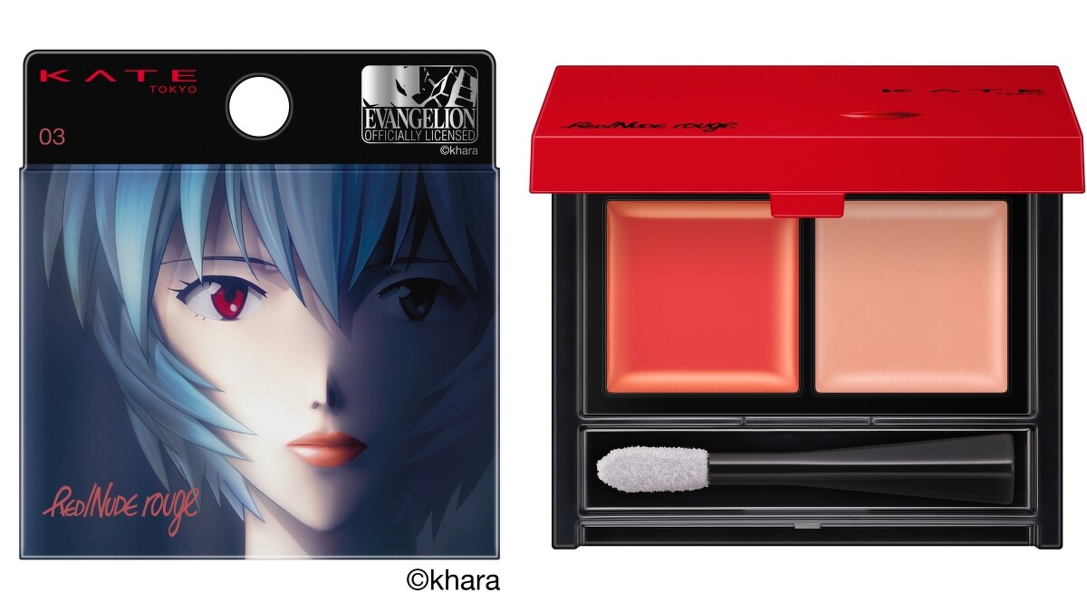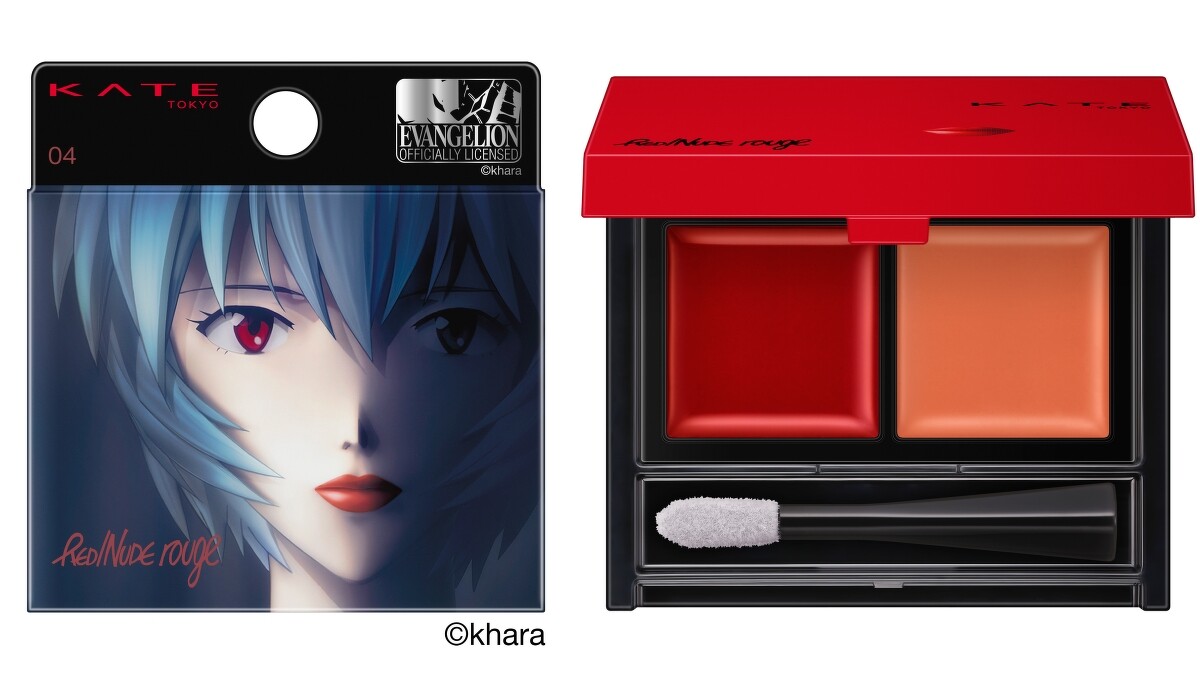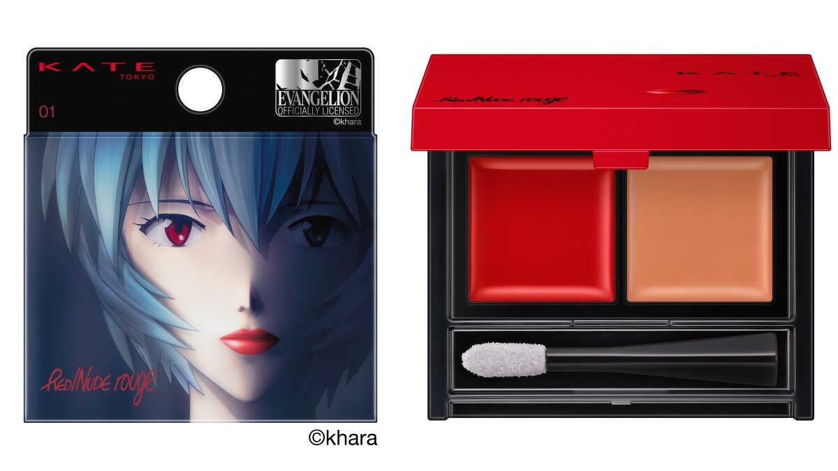 這次KATE新福音戰士聯名彩妝產品選定「赤裸混色唇彩盤」,每一盤都有赤、紅兩色,利用紅色底膏疊擦裸色唇彩的概念,透過兩色比例的調配輕鬆打造自我理想唇色,一共有四款配色。