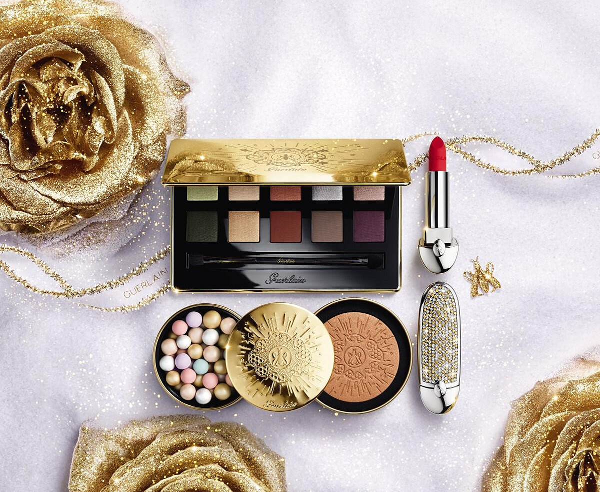 延續日本聖誕「綾羅錦繍」的主題,但相對日本限定的低調與曖曖內含光,英國限定強調派對的明亮感,因此色彩上顯得較多變,利用粉紅、粉紫、焦糖色,以及宛如喀什米爾羊絨般溫潤質感,帶出肌膚的自然氣質。