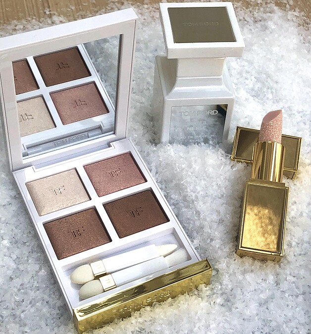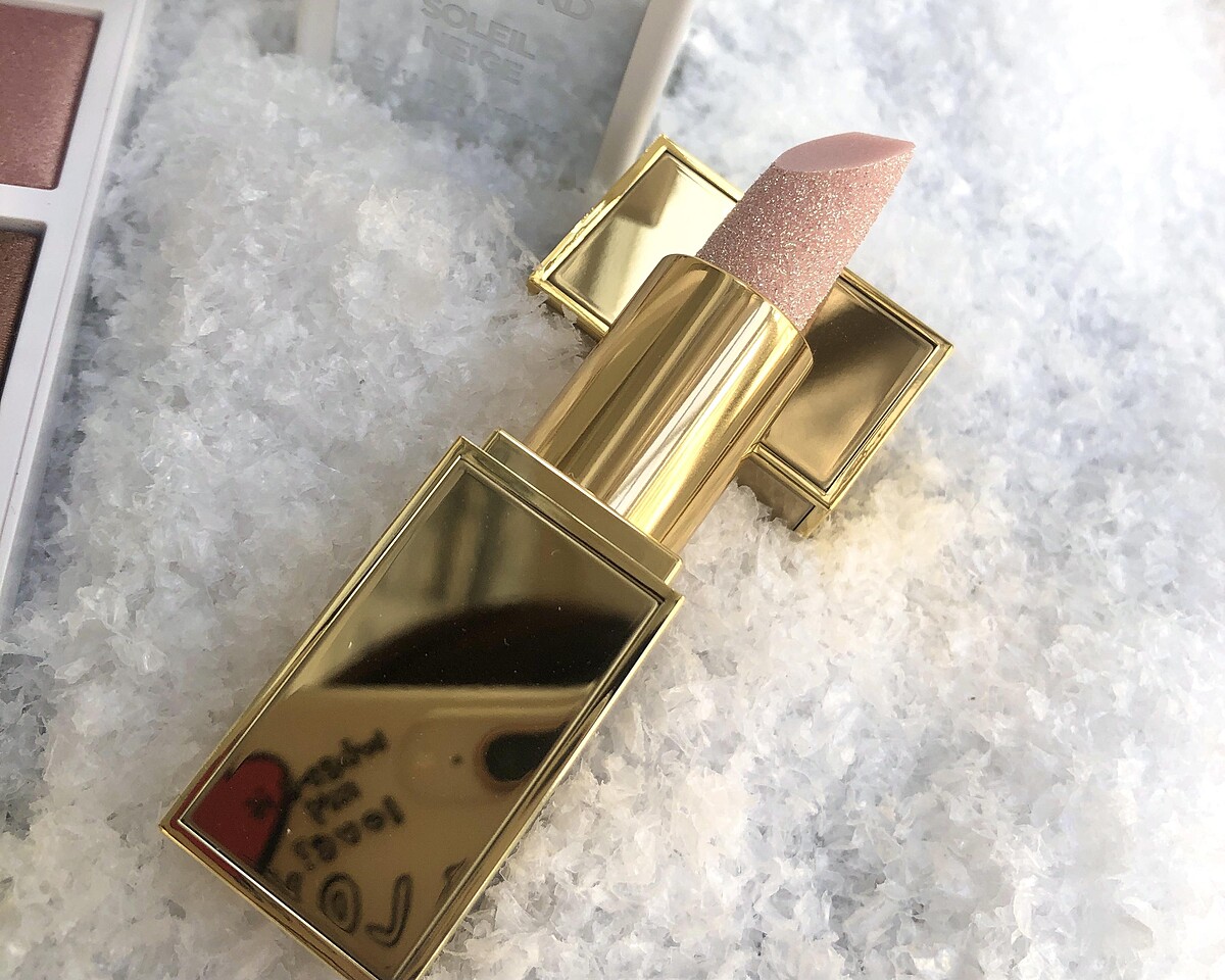除了眼盤外,還有全新限量的鑽光潤唇膏,蘊含高效滋養成分,抹開就可以感受到如絲綢般驊順,膏體上閃耀的金色細緻珠光就像雪地裡的結晶一樣!在TOM FORD櫃上消費任一品項,即可購買鑽光潤唇膏。