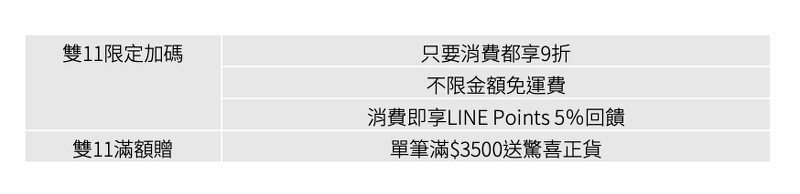 M編知道大家看完蘿拉蜜思的雙11陣容後,都覺得「好划算好想買!」但⋯⋯M編還要再放一次火,因為還有很多加碼優惠呢!針對官網消費的顧客,不僅有全站消費享9折+Line Points 5%回饋,更享不限金額免運費(官網)。