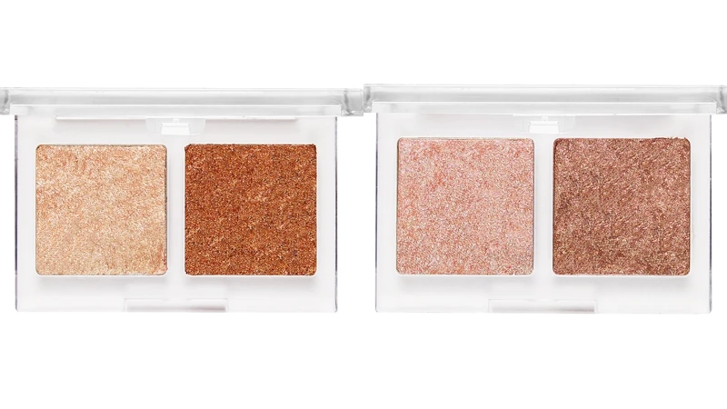 雙色頰彩盤則兼具了腮紅、打亮的功能,質地輕盈、服貼,色號輕柔為暖橘色搭配金色打亮,提升肌膚氣色宛如母胎美肌;色號光芒則為粉膚色頰彩混搭香檳色打亮,提升膚質和氣色。