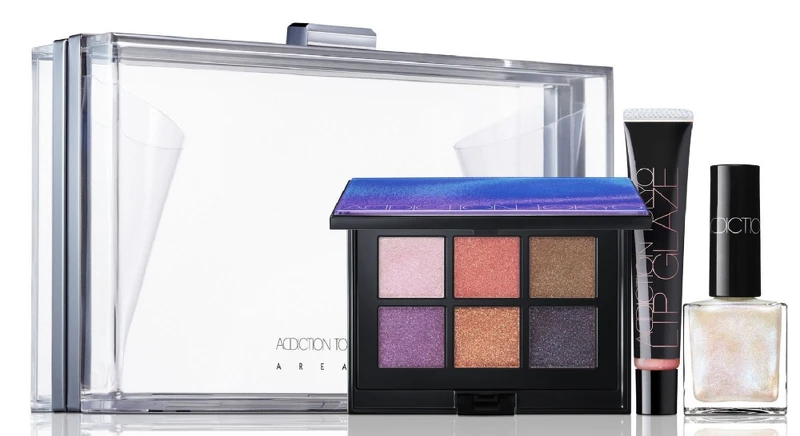 ADDICTION今年的HOLIDAY COLLECTION與來自NY的時尚品牌AREA共同聯名,以虹彩的幸福感為概念,展現時髦炫目光采的彩妝系列。組合中包括眼采盤、玩彩癮色指彩油、炫癮唇蜜、化妝包。當中的眼采盤(極光炫耀)#101共有6色閃爍光質地的魅癮眼采,展現未來感且光澤閃耀的雙眸。