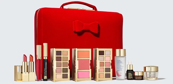 內容物:特潤超導全方位修護露7ml、特潤超導眼部修護精萃5ml、年輕肌密無敵霜15ml、微分子肌底原生露櫻花輕盈版 50ml、絕對慾望奢華眼影盤(#Nudes) 3.7g、絕對慾望奢華眼影盤(#Glam)3.7g、絕對慾望奢華修容盤(#Glow)8.7g、絕對慾望奢華潤唇膏3.5g、絕對慾望奢華潤唇膏3.5g、絕對慾望光感唇蜜、極度濃翹睫毛膏、夢幻市集化妝箱。