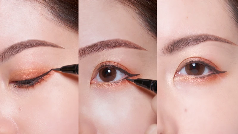 選用綴影彩色眼線筆#06灰棕色,好駕馭的煙燻色調,加上好上手的筆觸,一筆畫出微上揚的線條+填補心機的內眼線,修飾M編偏圓的眼型,卻不過份銳利,釋放100%電力,完美不漏電!