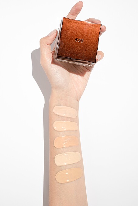 est嬡色重視女性對頂級保養的需求,底妝自然也必須講究養膚之效!因此主打的「柔光粉底霜」,不僅添加保養系列才有的頂級煥膚成分「嬡色核心保養複合物」,水潤柔滑宛如塗抹保養精華、輕撫即融、並特別設計粉底專用工具—獨特圓潤造型的「粉底霜專用海綿」(菇菇綿),質地輕柔、貼膚澎潤,在塗抹粉底後僅需輕拍,就能實現以手塗抹也難以成就的光澤完妝感。