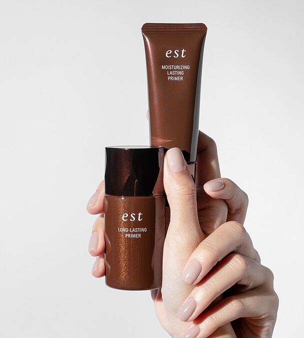 當然妝前打底est嬡色也特別為亞洲女性推出兩款不同肌膚的款式,乾肌適用的「持妝滋潤妝前乳」,擁有獨特高肌密服貼配方,能將高濃度保濕精華瞬入肌底,維持肌膚長效保濕,由內而外深入提升肌膚光澤。更針對造成脫妝的皮脂,使用固定粉體,為後續粉底緊密打底、加倍溢發肌膚透亮光澤。為使油性肌更持妝,「控油持妝妝前乳」同樣添加獨特「高肌密服貼配方」,使妝容完美貼合!同時新增「長效持妝配方」,注入能撥開皮脂的油劑與皮脂固定粉體,避免汗水、皮脂造成脫妝,讓肌膚呈現親合度極佳的細緻珠光,柔光自然煥發。