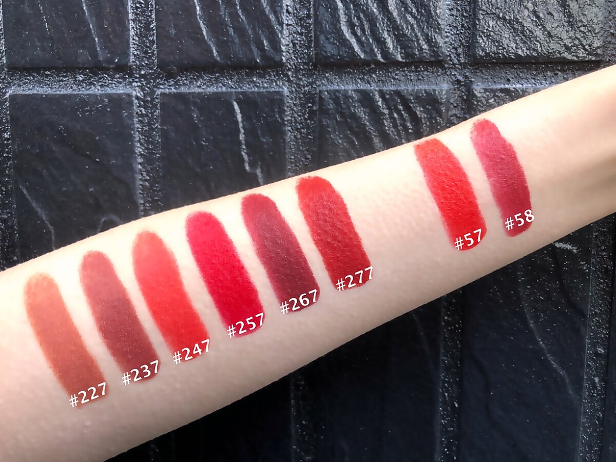 香奈兒超炫耀獅子絲絨唇膏共限量推出八色,搖曳閃亮柔霧質感,每款唇膏皆代表獅子的個性特質:熱情、奔放、直覺、大膽。八個色號有兩個既有色以及六個新色:#57火焰(原有色)、#58美麗人生(原有色)、#227凱旋、#237無畏、#247慾望、#257氣勢、#267狂野、#277熾熱。