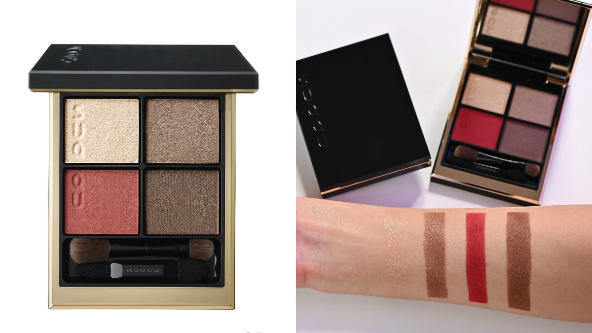 以高雅的質感與時尚的色調博得超高人氣的SUQQU四色眼彩盤,2021年升級重點更強調「優越粉質」和「季節性色彩」。這次的質地強調極為服貼、不飛粉,一抹就有緊密服貼於肌膚的薄膜質感,疊擦依舊保有透明感。同時粉體中大量添加清澈珠光clear pearl,即使深色調也具有清透感與光澤感。