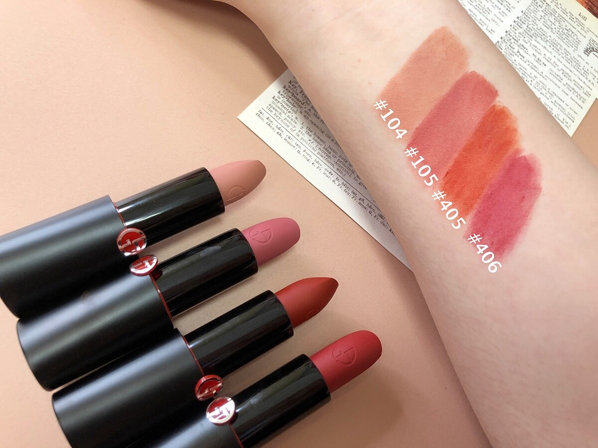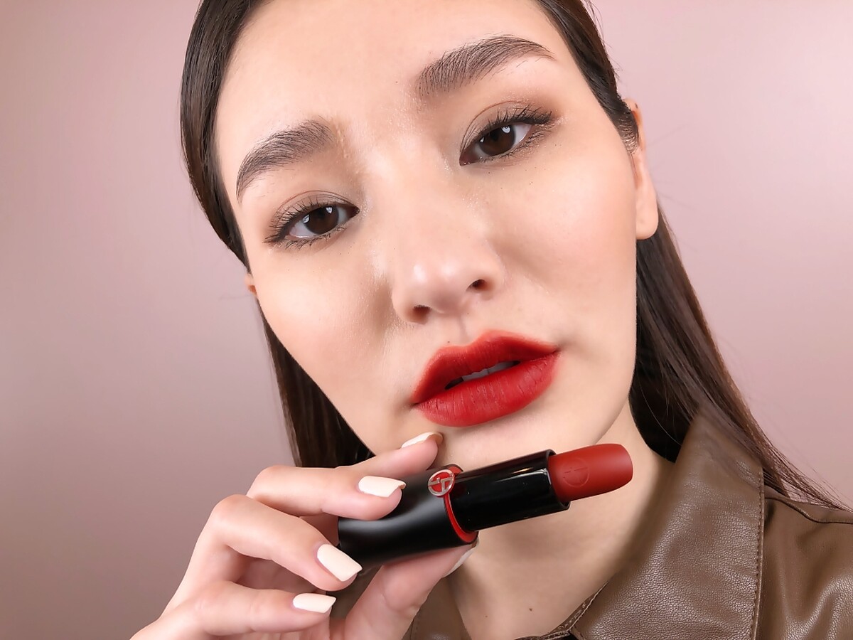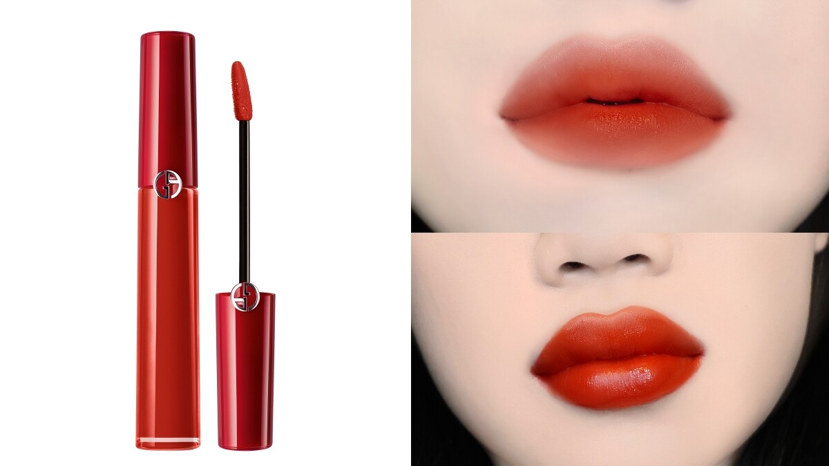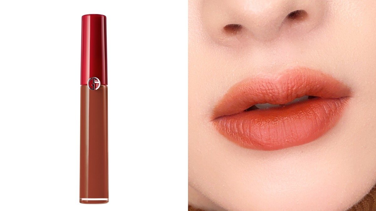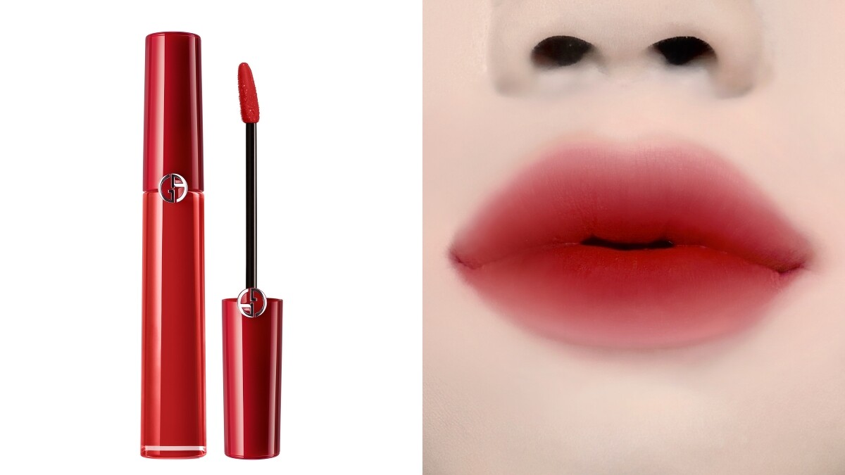 #405蕃茄紅棕更是Giorgio Armani每年熱賣的唇萃色號,這次首度推出霧面唇膏版本,打造黃皮白皮皆能輕易入手的訂製霧感美唇。