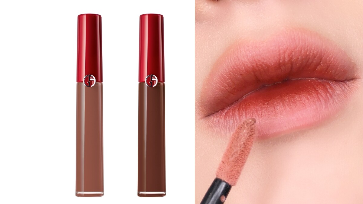 GIORGIO ARMANI奢華絲絨訂製唇萃2021年年初推出「威尼斯日落暖棕系列」,以威尼斯日落為靈感的一系列棕紅色調真的巨美,復古的暖調質感棕色,比玫瑰色更襯膚色、比土色更顯白皙。