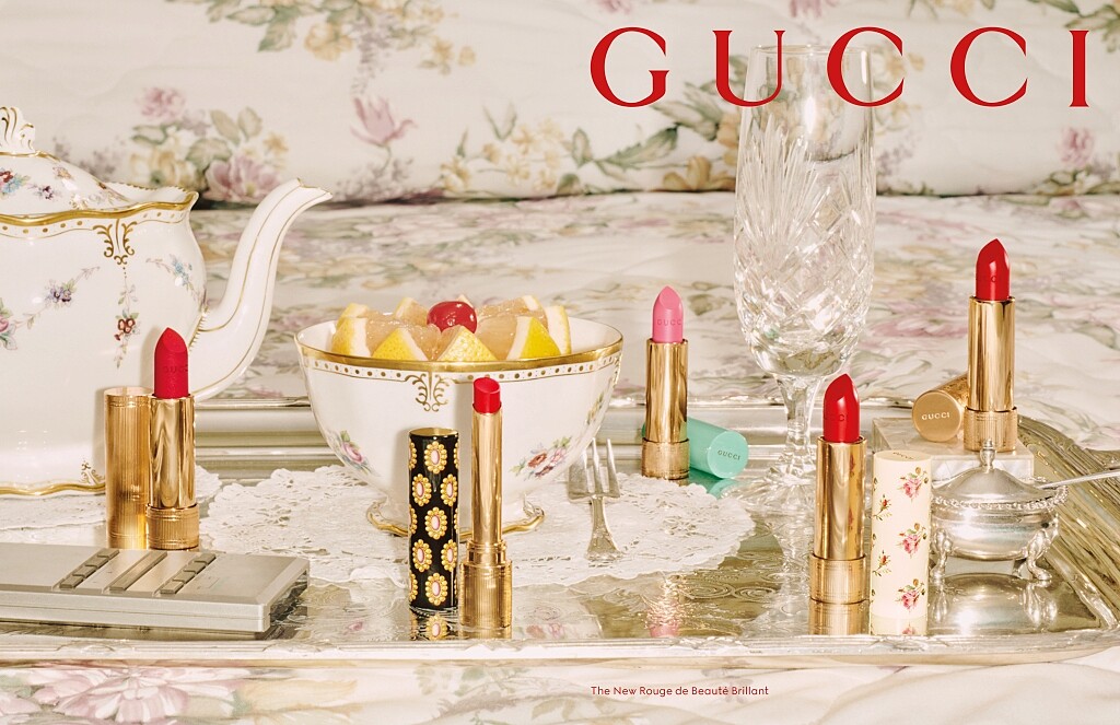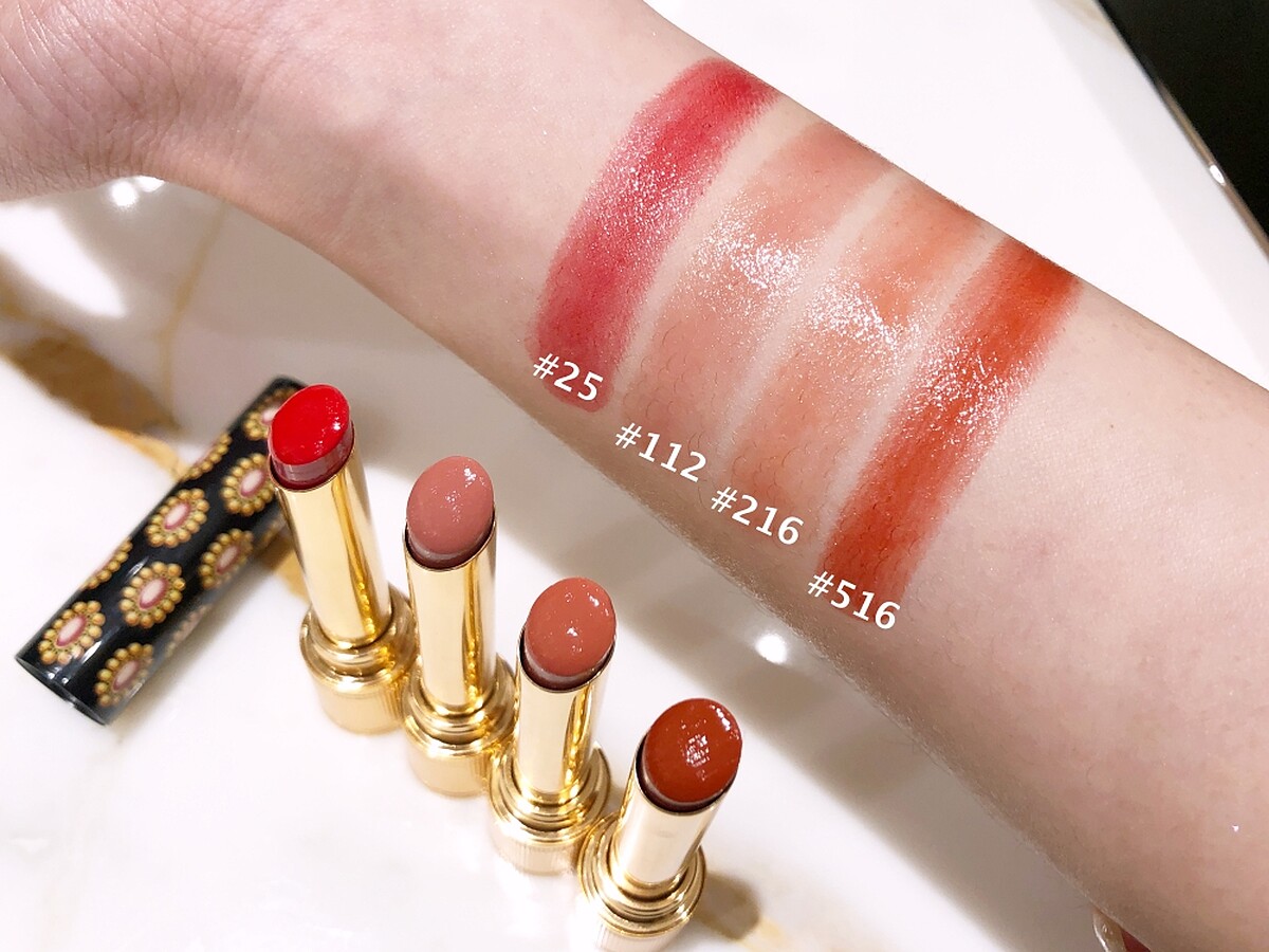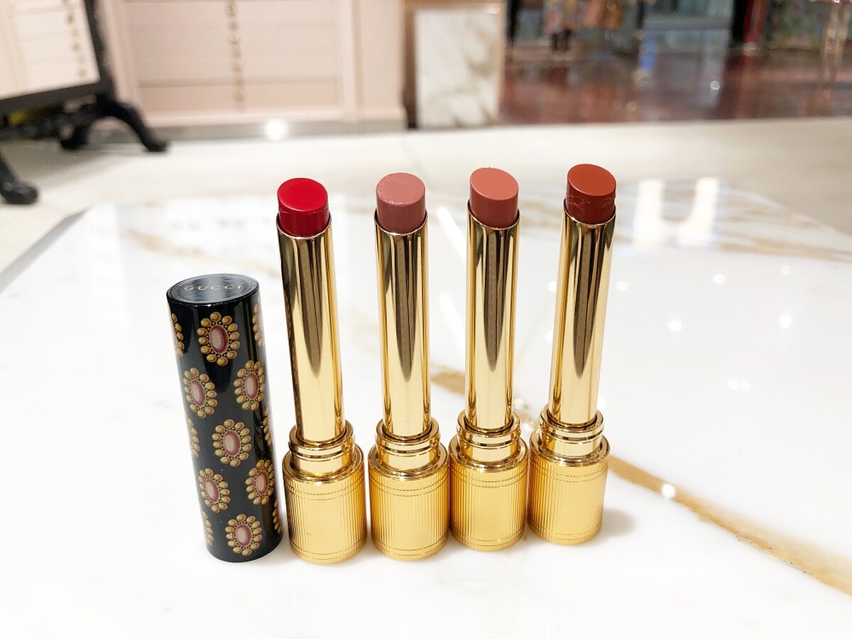 Gucci 2021年再推新口紅-傾色琉光唇膏,集鮮艷色彩和滋潤效果於一身。因為配方以玻尿酸、果油、花卉萃取精油為基底,注入了奢華且高滋潤度的黑玫瑰精油、牡丹花卉萃取精油,並結合荷荷巴籽油和乳木果油、玻尿酸等等,所以擦起來特別水亮,媲美護唇膏一樣,讓唇妝格外水潤光澤。