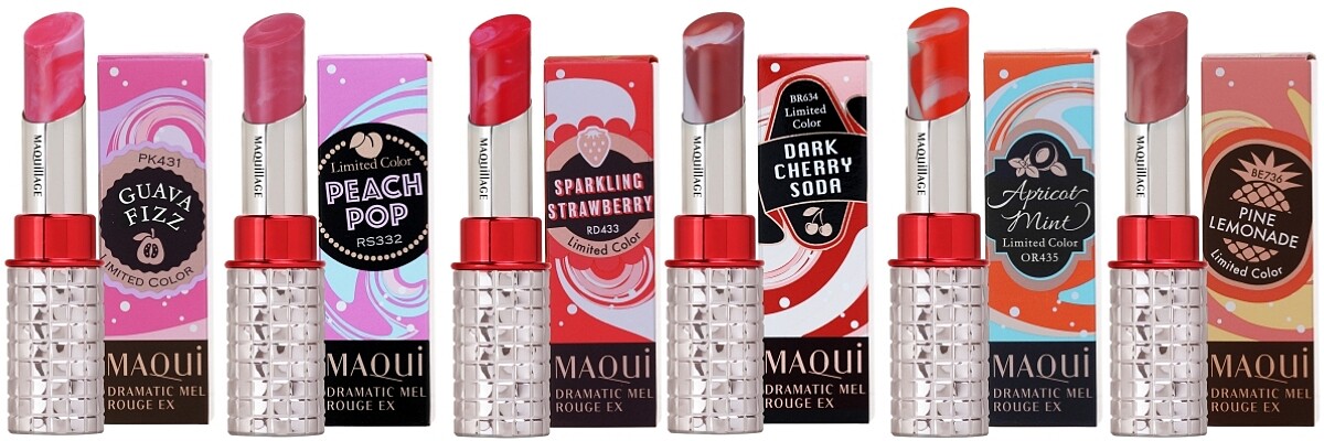 因應炎夏,心機彩粧精選六款特色熱帶水果,打造出獨一無二、充滿夏日氛圍的繽紛氣泡特調唇膏。當中注入擁有高純度保濕美容油(摩洛哥堅果油、橄欖油、荷荷巴油、山茶花油、玫瑰果油),打造出純淨色調層和絢麗氣泡層,將兩者完美比例混搭,同時滋潤柔軟雙唇、更一抹清涼、完美服貼。