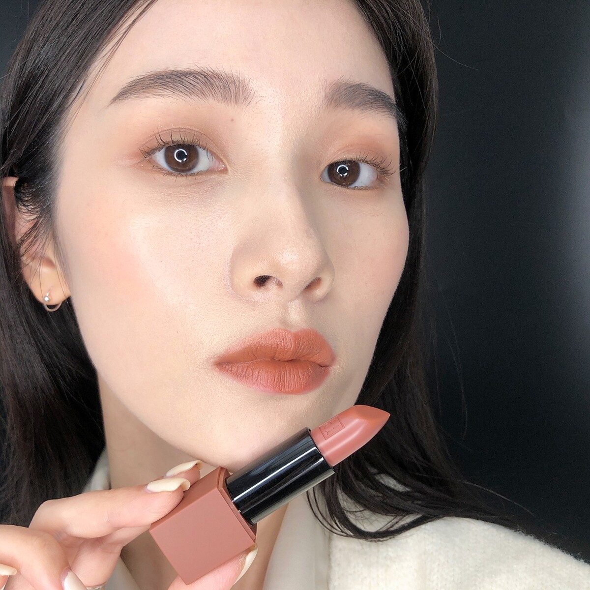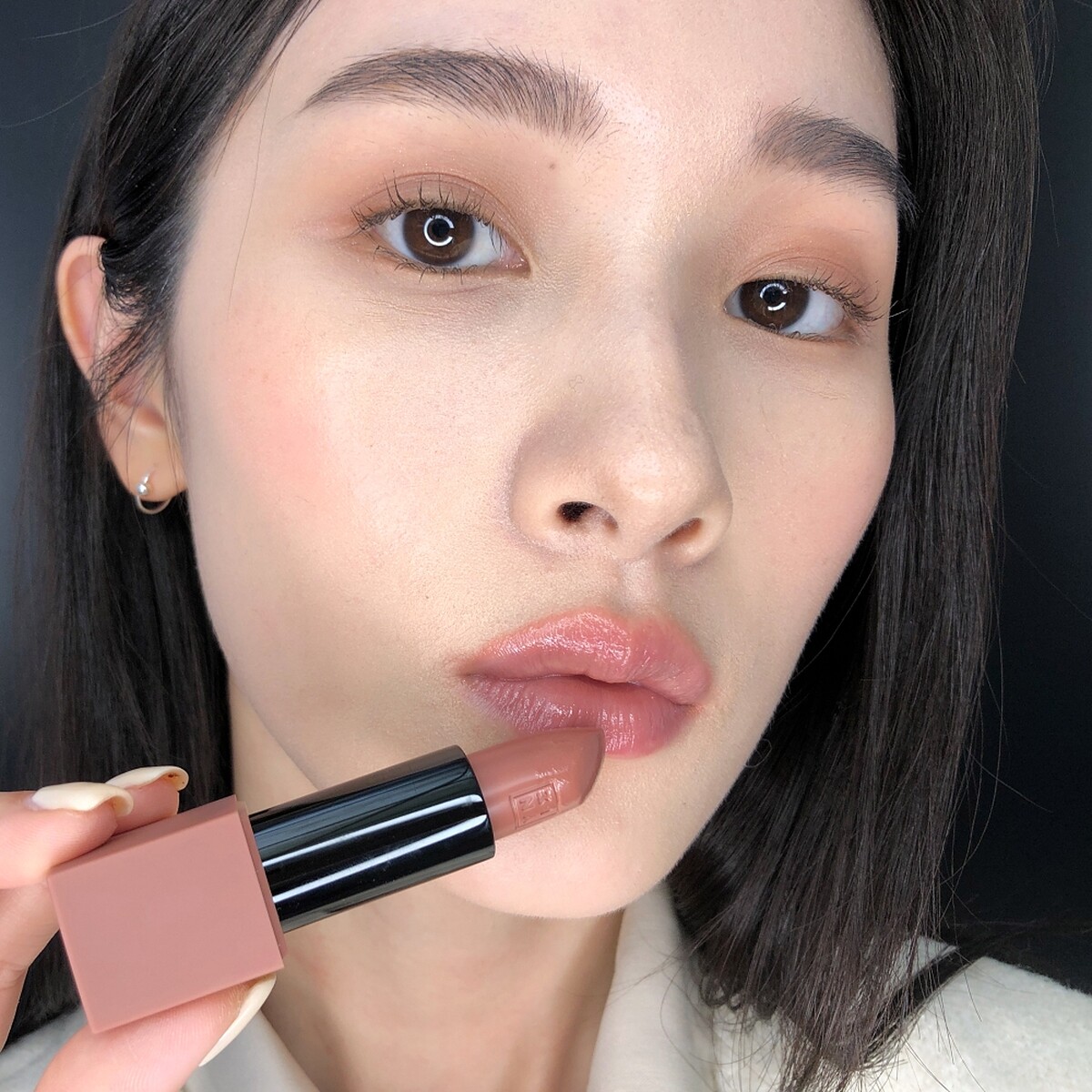 絕美裸粉色系。低飽和玫瑰奶茶色,溫柔沈穩顯膚色白皙,是最日常百搭的唇色。