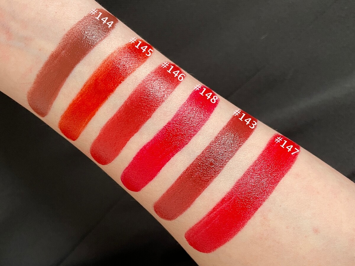 全系列包括12色:(上排開始左至右)#121純情蜜桃、#122曖昧無花果、#123情挑荔枝、#124玫好誘惑、#125歡愉蜜橘、#126橙人愛戀、#127迷魅草莓、#129誘惑漿果、#130桃氣莓果、#131魅紅柿言、#132紅暈白桃、#135珊情紅莓。