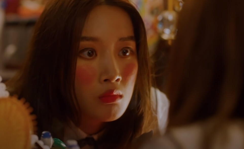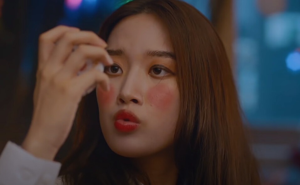 眼妝和頰彩也是初學者很容易下手過重的環節,雖然覺得劇中的腮紅兩個圓圓的是有點太誇張,但在上妝時確實要注意有沒有將眼影、頰彩等粉類彩妝好好暈染開,也建議彩妝初學者可以挑選顯色度沒有那麼高的產品,少量多次的堆疊總比畫過頭好喔!