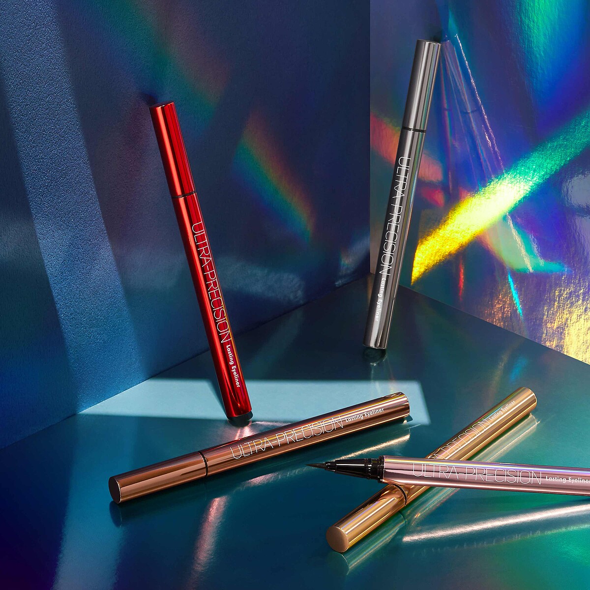 完美眼線液的兩大關鍵就是線條流暢及抗暈染。以金屬管身打造的全系列放色線激穩抗震眼線液,採用易掌握的份量級穩定筆身,符合手掌寬度及角度的設計,即使新手也能一筆到底,穩定描繪不失控。零誤差激穩流暢線條搭配0.01mm彈性精細筆頭,出水不間斷,控色不斷墨,大膽放色創造精準眼神。五合一控暈科技,防熱、防搓、防水、防油、防暈,綻現濃密光澤感的細緻眼線,不脫妝、不掉色、零暈染,隨時保持眼神100%自信魅力!
