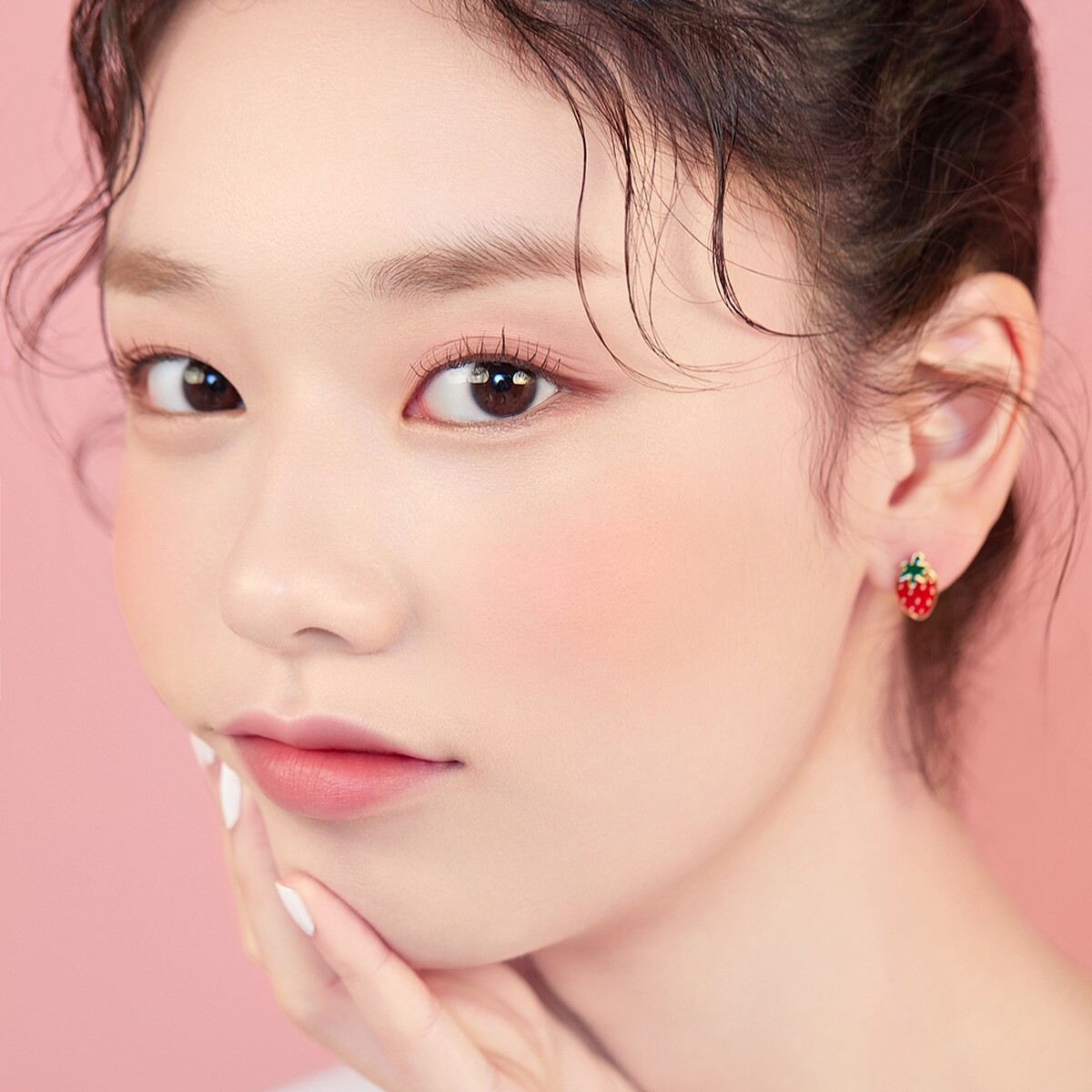 有了粉嫩草莓感的眼妝當主角,頰彩部分建議畫上奶霜裸色系點綴。比起粉色或紅色系腮紅,奶霜裸色系的頰彩不僅能修飾臉部線條,又能避免臉部色彩過於甜膩,更能帶出整體妝容的溫柔感。