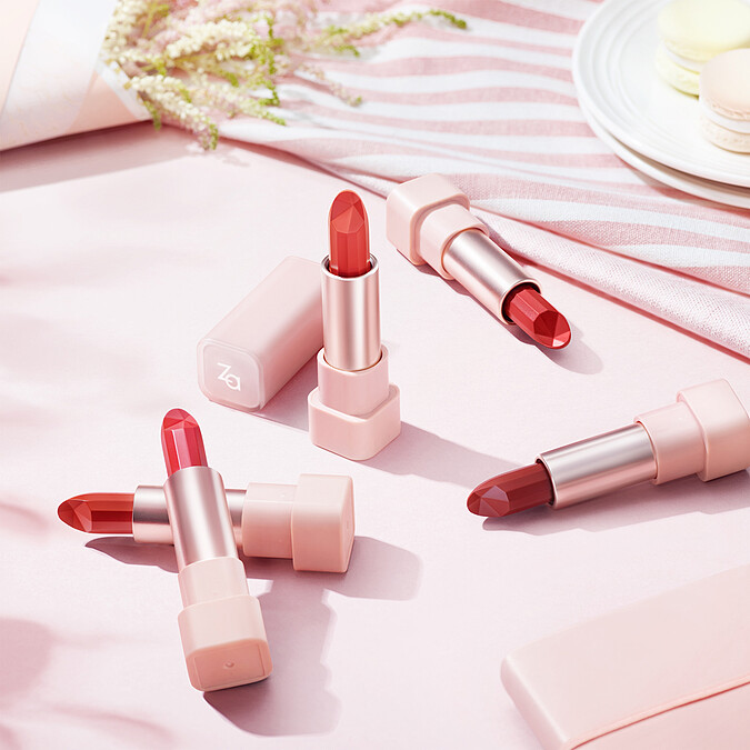 包裝超療癒的ZA潮色邂逅唇彩,上市時就有水潤、柔霧、金屬光三個質地,2021年柔霧款以奶昔為靈感,推出5個全新色選,擁有鑽石切面加上微霧妝感,專為亞洲人偏黃肌膚設計的調色,隨便挑都是百搭色。