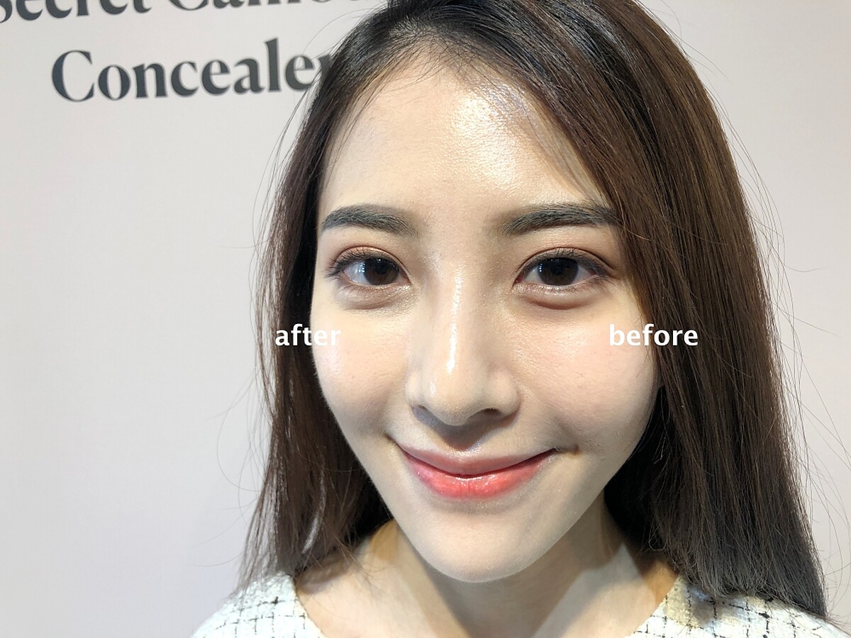 ↑LAURA MERCIER蘿拉蜜思煥顏雙色遮瑕筆使用前後比較。
