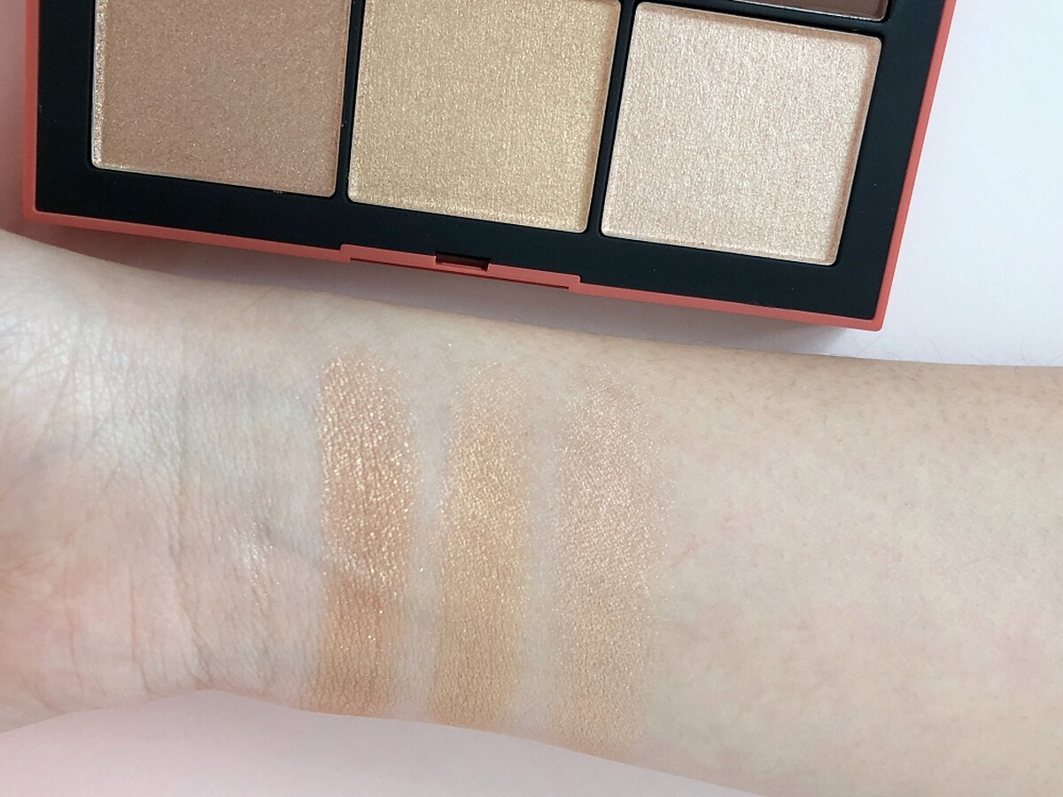 這盤「微醺香檳盤」以微醺12%濃度粉紅香檳為靈感,調製令人上癮的八個微醺香檳色系絕美眼彩,眼影中特別添加珍珠顯色微粒創造自然柔美顯色光澤,還有高科技絲滑技術使眼影輕盈服貼更好推勻。盤中更搭配三款打亮色,添加首創玻璃水光分子能加強折射自然光澤,一抹提亮輪廓。