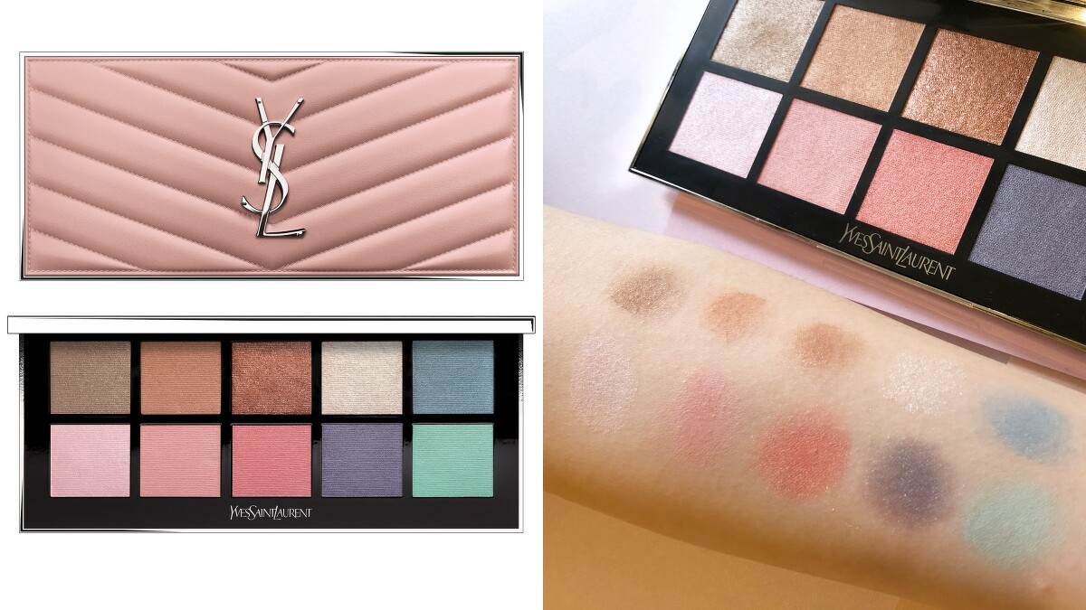 YSL 2021年推出全新常態款眼影盤-訂製奢華皮革彩妝盤,內含10色眼影,外盒則採用YSL經典的馬特拉斯V型凸紋皮革。