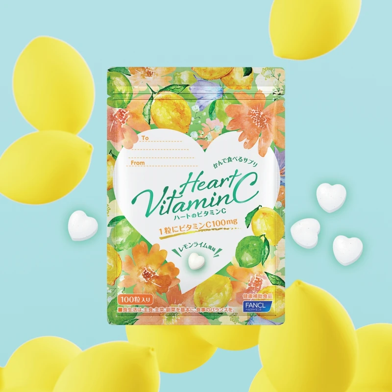 FANCL超人氣「甜心維他命C錠」再度於2021年白色情人節前夕登場!不僅每一粒維他命C錠都是超可愛的甜蜜小愛心造型,這次限量推出的還是檸檬萊姆口味,口感清新酸甜,每粒含有100mg維他命C,不須配水、直接咀嚼即能食用。繽紛外包裝同樣有心型圖案,加上留言欄可以傳達滿滿暖心情意,絕對是白色情人節送禮首選。