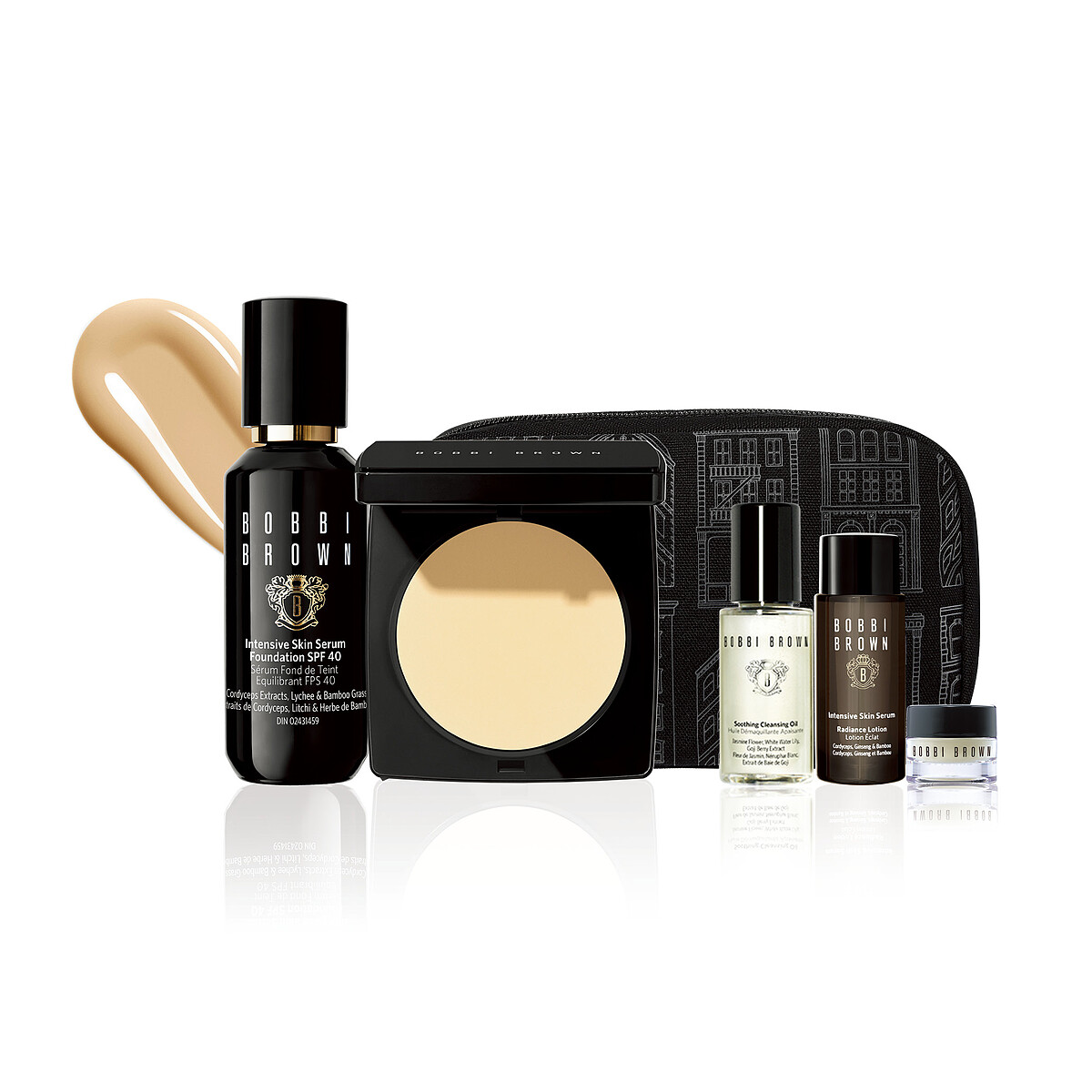Bobbi Brown將明星底妝:冬蟲夏草精華粉底、羽柔蜜粉餅湊成一對,擁有這組粉底液、定妝一次完成,還加贈新品蟲草精華露、潔顏油、維他命乳霜和化妝包等,可以說是全明星隊伍。