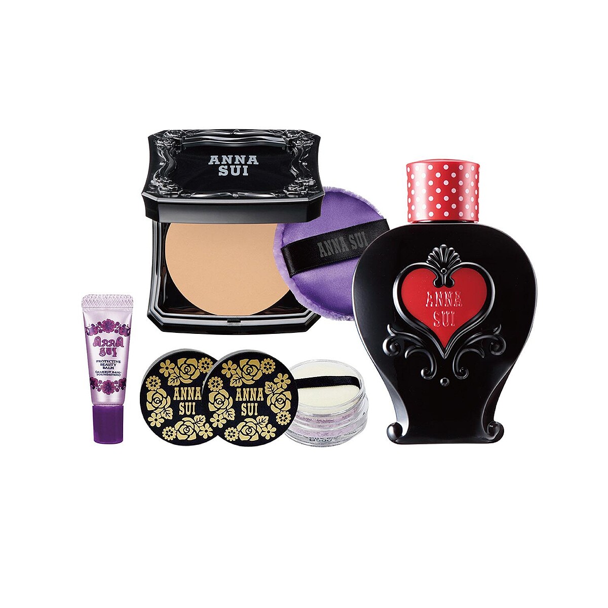 Anna Sui今年推出底妝新品薔薇秘鏡防曬粉餅 SPF30 PA+++,搭配了妝前精華、熱銷多年的薔薇魔法蜜粉等,組合成零毛孔完美底妝組,防曬、保濕、毛孔隱形一應俱全。