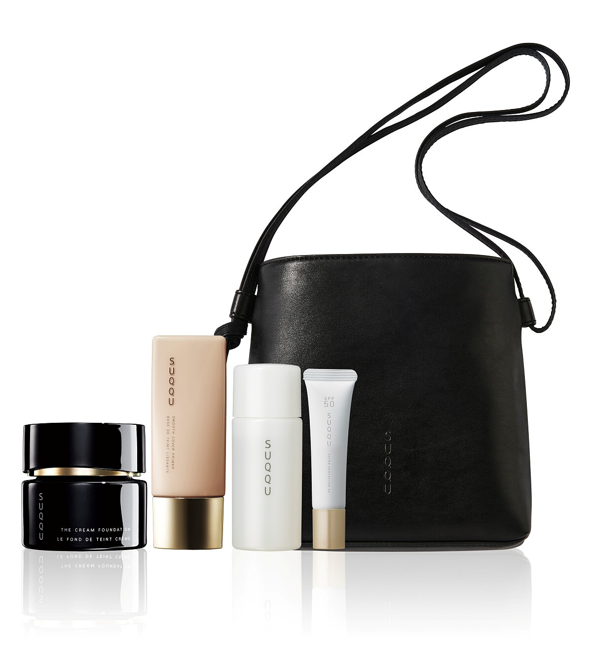 Suqqu將熱銷的粉霜和今年4月全新上市的采柔肌粧前乳組合,搭配使用就能打造宛如天生好膚質般的細緻陶瓷肌,還可以獲得簡約質感側背包。