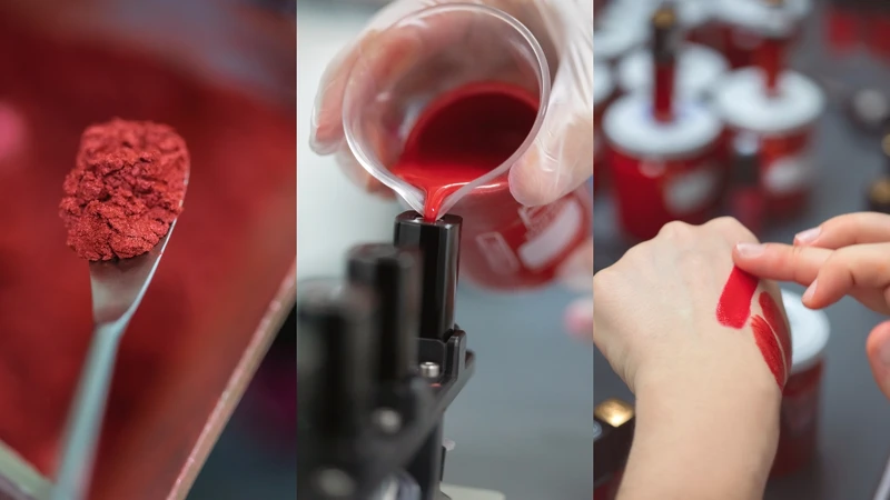 隨著測試的演進,配方更完美,最後才開發出可瞬間融於唇瓣,同時仍保留光澤與持色特色的配方。