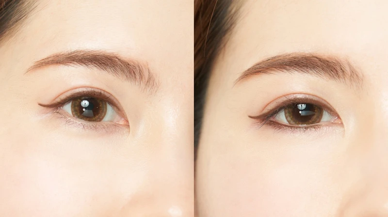 杏仁型筆芯的「面」可描繪出穩定線條,而「角」則能勾勒出俐落線條,因此即使是眼線筆也能畫出超細緻的上挑眼尾眼線。