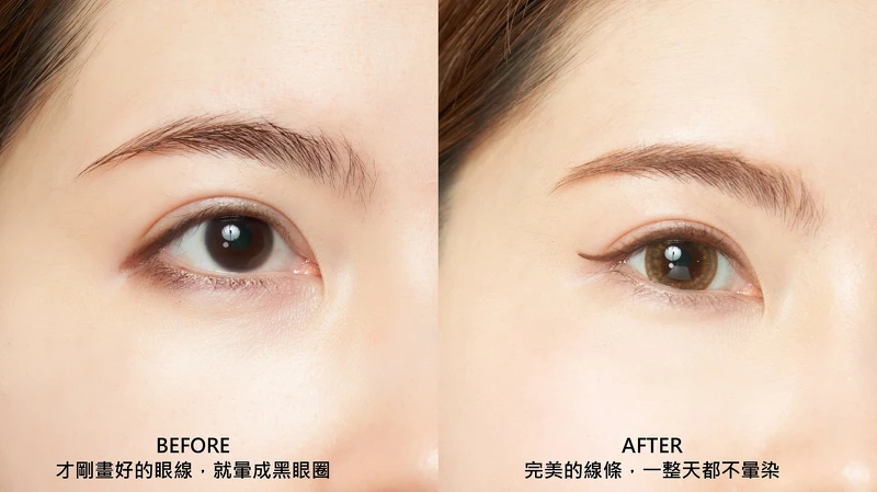 擔心眼粧遇汗、遇水、高溫出油融成熊貓眼?請放1000個心,不易暈染掉色配方,讓妳的眼線超持粧超完美,狂歡蝦趴一整夜都不怕,雙眼依舊電力滿分。