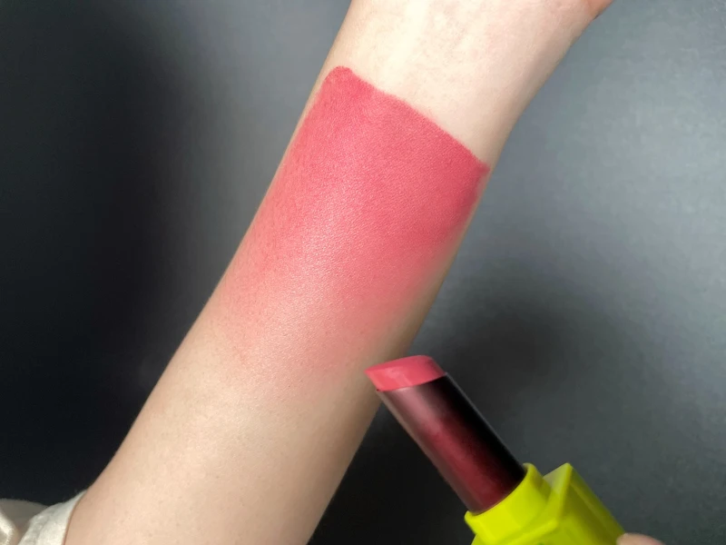 水感的質地在唇上收乾後為霧面妝效,既是霧唇,又蘊藏著鮮嫩感,薄膜設計可輕鬆疊擦、自然暈染,紅棕色調在春季也能輕鬆被駕馭。
