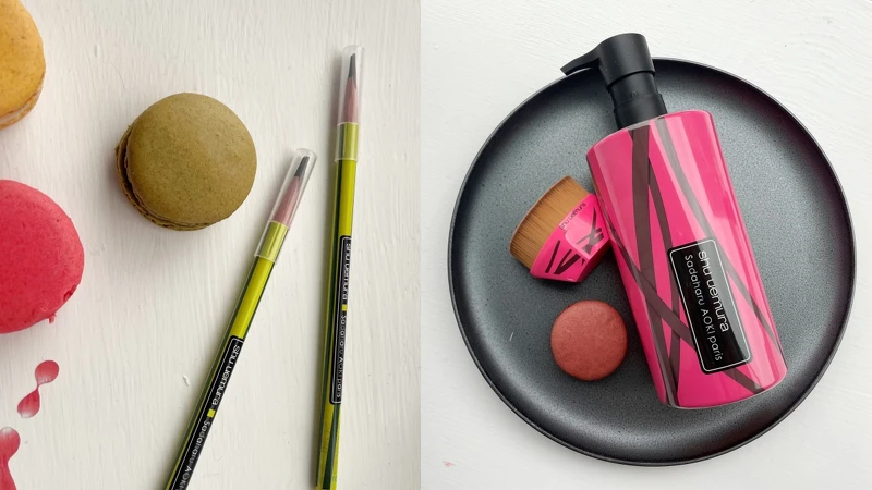 除了包含全新品的眼盤及唇彩外,植村秀也替三款人氣經典商品換上限量新裝。包含:全能奇蹟金萃潔顏油、武士刀眉筆,以及#55零刷痕粉底刷,替經典品項注入法式精品甜點的時尚感。