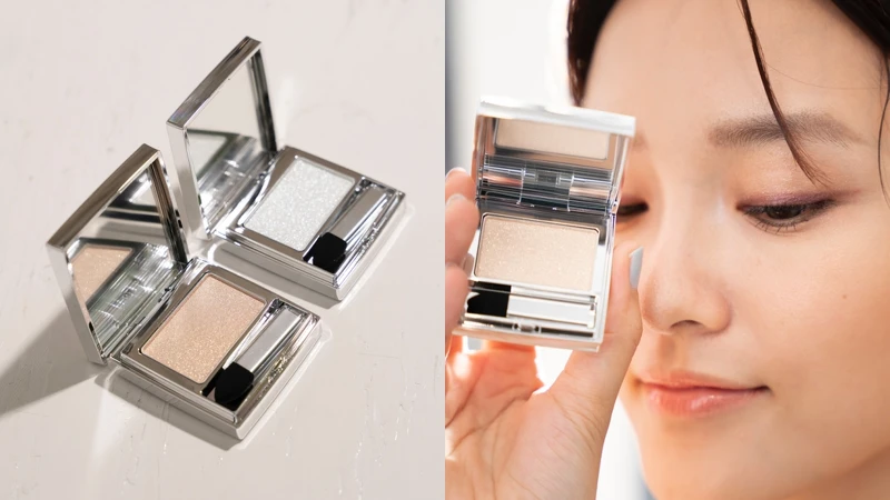 眼影有兩色,分別為01Crushed Ice,銀白色調中閃爍細緻的銀色珠光;02 Secret Dust 好駕馭的暖調裸色,閃爍著細緻銀色珠光,眼影質地細緻濕潤、服貼度加,使用棉棒即可輕鬆上妝,打造具有水光透明感的眼眸,可作為暈染、提亮之用,亦可勾勒細緻線條用於眼尾,加強眼眸的深邃度。