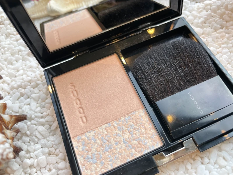 雖品名為蜜粉餅,但卻是以頰彩為發想設計的多功能產品,包辦定妝、打亮、修容三功能,使用天然礦物色結合極細緻的光采粉體可自然反射光線,彷彿將妝容融於肌膚中透出自然光澤感,雙色修容蜜粉餅的設計,可使用暖杏色輕刷於臉部重點打亮,如顴骨、鼻樑、下巴和額頭,古銅棕可作為加強臉部輪廓及線條,打造立體小臉。