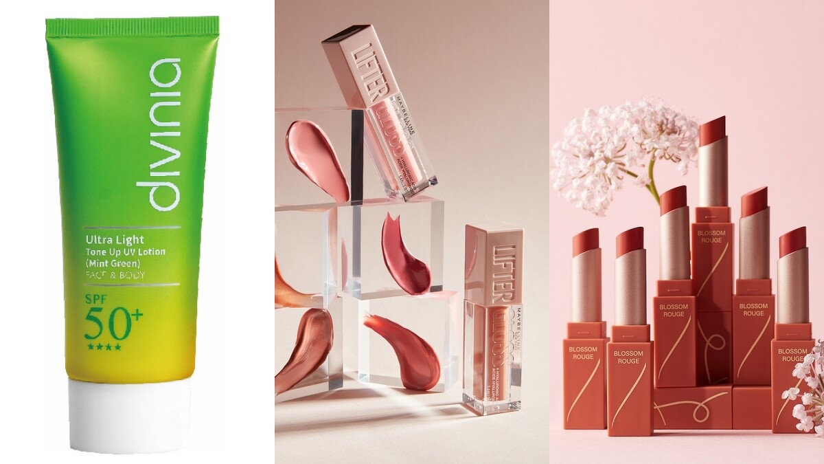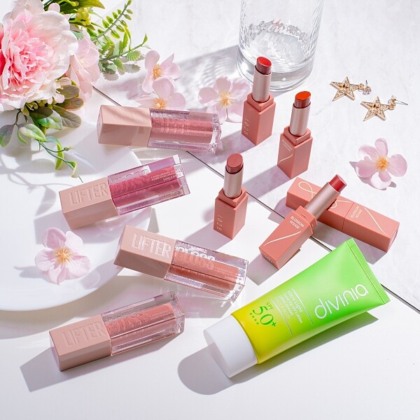 推薦商品:divinia零負擔柔皙提亮防曬乳SPF50+、媚比琳輕奢誘吻唇萃、1028花顏唇語霧萃唇膏